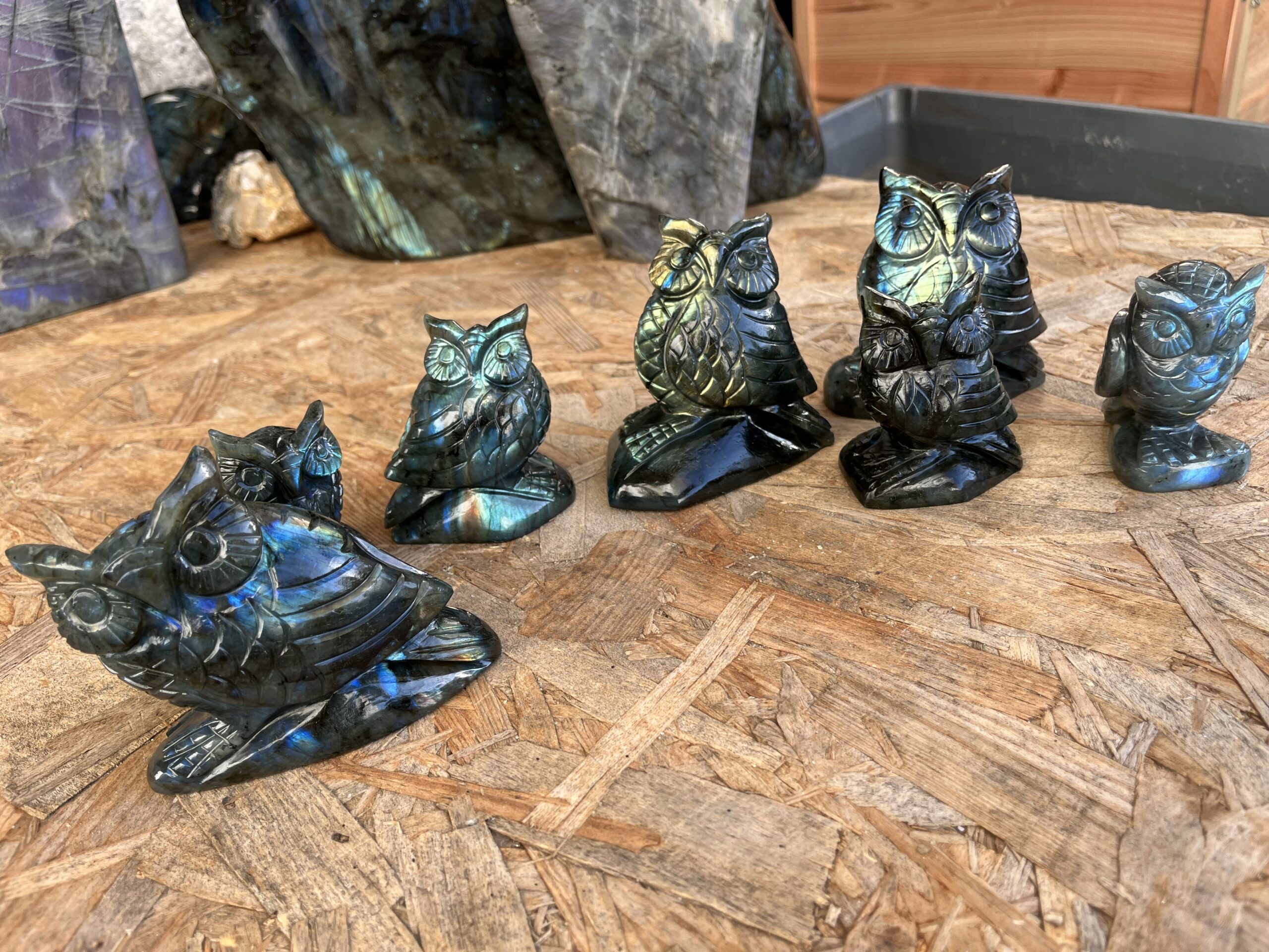 Pointes, galets, sphères et formes libres labradorite, fluorite, cornaline, quartz rose, sirius et merkaba en cristal de roche…