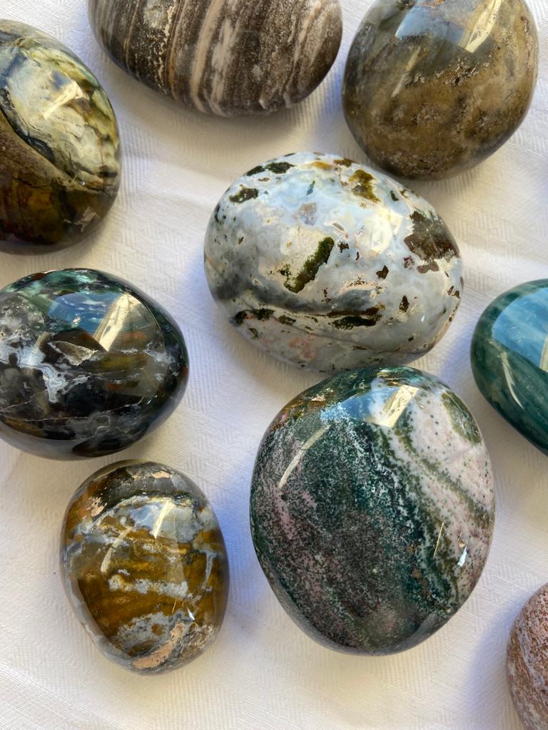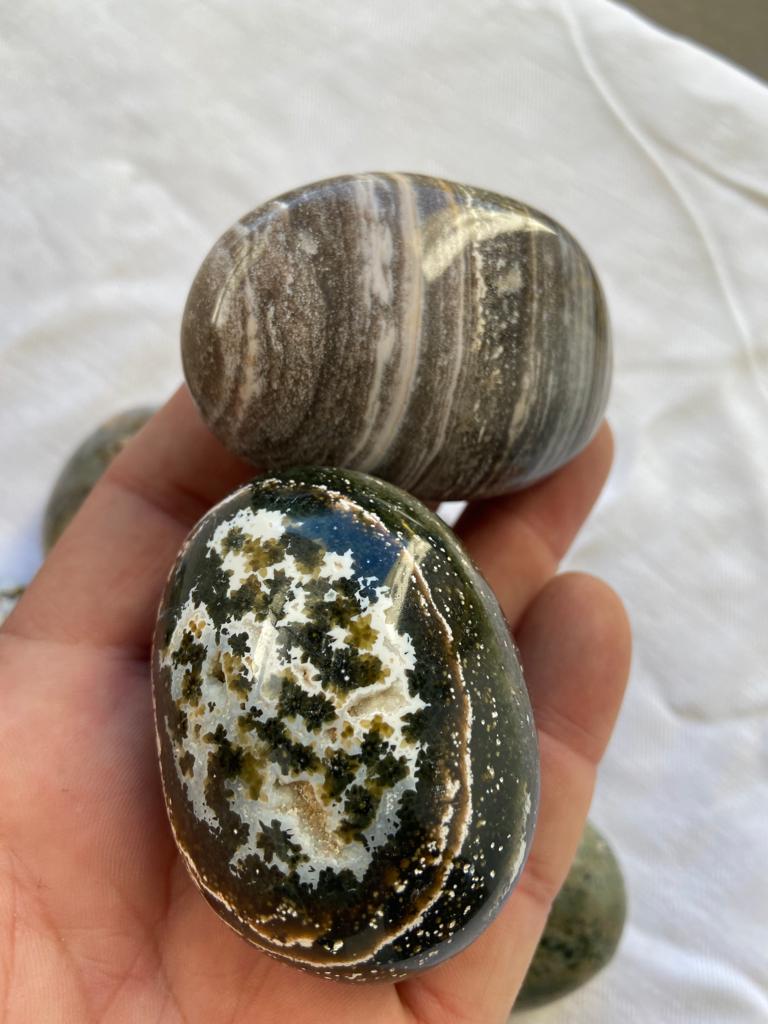 Palm and Tumbled stones